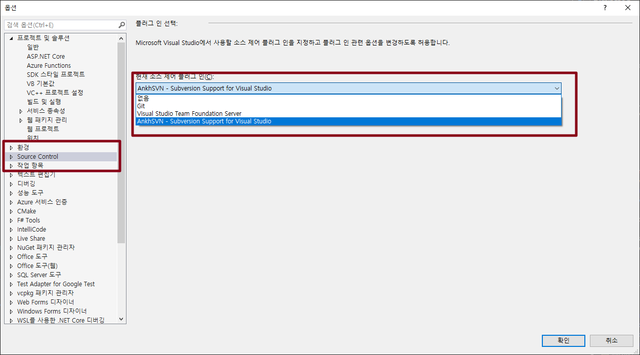 소스관리 SVN이 없는것을 확인!