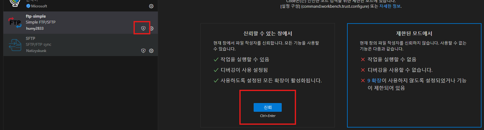 - 설정한 FTP 선택